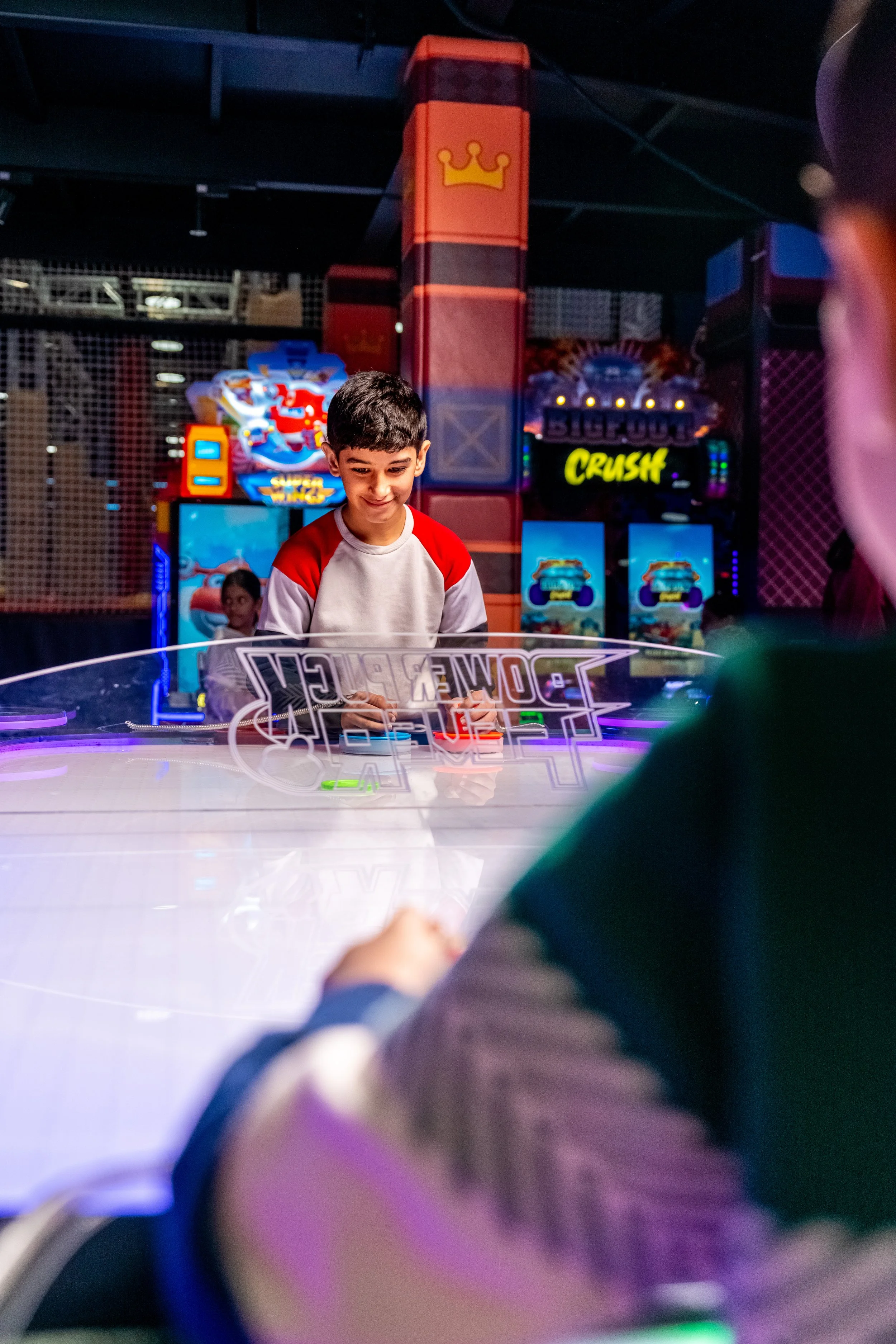 In a fun arcade, laughter fills the air as kids play with bright lights and exciting sounds. Colorful games invite young players to race and tackle challenges, cheering for high scores with happy faces. Friendships grow through shared wins, creating lasting memories.